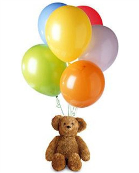 Skip to contentYou do not need an occasion to send this balloon and teddy bear bouquet. Simply brighten someone’s day with this colorful bouquet. Includes six Latex Balloons and a Teddy Bear. Upgrade to a Deluxe for eight balloons or the Premium for a total of ten balloons.