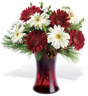 Skip to contentGo crazy for daisies this holiday season with a cheerful bouquet of red and white gerberas, in the traditional colors of Christmas. It’s the happiest bouquet of the season!