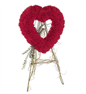Skip to contentThis gorgeous solid-flower heart, made of bright red carnations, reminds us all that love is eternal. Approximately 21” W x 28” H.