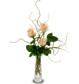 Skip to contentThree peach roses with stylish foliage in a charming glass vase. Approximately 13″ W x 20″ H.